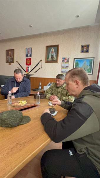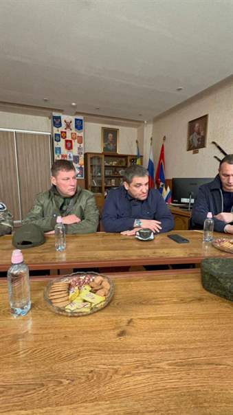 Депутат Госдумы Сергей Веремеенко и Николай Дьяконов, командир казачьей бригады «Дон» с боевыми товарищами