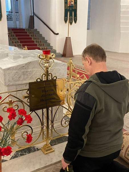 У гробницы атамана Платова в Новочеркасском соборе