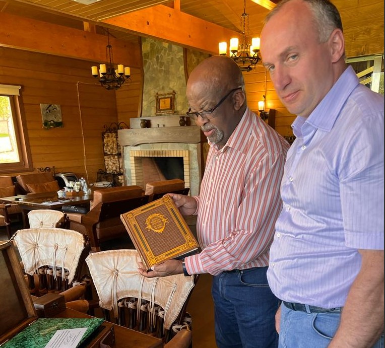 Почетный консул ЮАР в Свердловской области Сергей Мазуркевич подарил послу М. Макетука книгу об истории России на английском языке. Также в завершении ИННПРОМ-2023 в павильоне Беларуси прошла теплая встреча посла и почетного консула.
