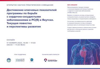 Это стало главной темой открытого научного-практического совещания, посвященного достижениям целевых показателей программы по борьбе с сердечно-сосудистыми заболеваниями (ССЗ) в Республике Саха (Якутия) и Якутске, которое состоялось 17 ноября в гибридном формате. Мероприятие прошло в рамках XIII Национального Конгресса с международным участием «Экология и здоровье человека на Севере», организатором которого выступил Северо-Восточный федеральный университет имени М.К. Аммосова.